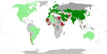 ![]() Membri UIC: verde închis - activi, verde deschis- asociați, cenușiu - afiliați | |