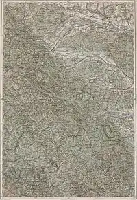 - de Gezeichnet v. Hans Ravenstein; Galizien (Karpathen), Bukowina nebst anschließendem Ungarn, Russland, Ravensteins Geographische Verlagsanstalt u. Druckerei; Verlag L. Ravenstein; Frankfurt a.M.; 1916