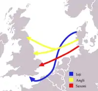 Cunoscuți sub numele de saxoni sau anglo-saxoni, aceștia erau de fapt anglii (din Schleswig-Holstein în sudul Danemarcei/nordul Germaniei), saxonii (din nordul Germaniei) și iuții (din Iutlanda, pe coasta Germaniei/Olandei).