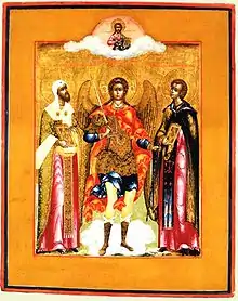 ![]() Leontie al Rostovului, Arhanghelul Mihail și Ioan Colibașul (în dreapta) | |