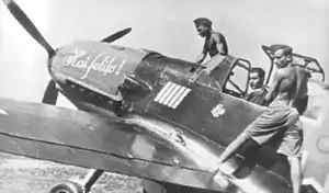 În timpul celui de al Doilea Război Mondial, din 22 iunie 1941 și până în anul 1944, a luptat pe Frontul de Est, în cadrul Grupului 7 Vânătoare, pilotând un aparat Messerschmitt Bf 109E, inscripționat „Hai fetițo!”.[2][4]
