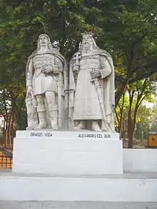 - Dragoș Vodă și Alexandru cel Bun ca parte din Grupul Statuar al Voievozilor din Iași (1934)
