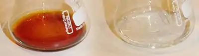- I3− + 2 S2O32− → S4O62− + 3 I− (Ereaction = + 0,4555 V)