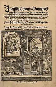 „Războiul Evreilor” (în greacă :Περί τού Ίουδαίκοΰ πολέμου, latină :Bellum Judaicum, germană : „Jüdische Chronic”), 7 volume traduse în limba germană în 1552. Cartea descrie primele agitații anti-romane din Iudea din 66, până la cucerirea și distrugerea Ierusalimului de către Titus. Scrisă inițial în arameică a fost tradusă de Iosephus în limba greacă prin anii 75-79.[24] Unul dintre volume relatează rezistența unui grup de luptători evrei care s-au refugiat în pustiu, la Masada, un fost pichet de pază herodian aflat pe un pisc din apropierea Mării Moarte, unde au rezistat atacurilor romane, apoi, după epuizarea posibilităților de rezistență, s-au sinucis (majoritatea) împreună cu soțiile și copii.