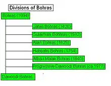 Azi, ramurile majore ale ismailismului șiit sunt hoja și buhurii. Grupul hoja își are rădăcinile în secta nizarită a ismailismului, în vreme ce buhurii sunt descendenții musta'iliților. Ambele grupări sunt rezultatul unor activități misionare care au început în vremea dinastiei fatimide din Egipt.