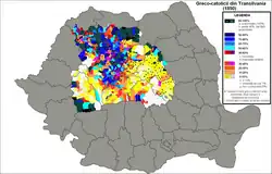 Datele recensământului din anul 1930 arată că românii din interiorul arcului carpatic aparțineau celor două confesiuni (ortodoxe și greco-catolice) în proporții aproximativ egale, cu o majoritate ortodoxă. Astfel, în Transilvania se găsea o majoritate românească greco-catolică (31,1% din populație), în timp ce ortodocșii vin pe locul al doilea (27,8% din populație). În Banat proporția greco-catolicilor era de 3,6% (comparativ cu 56,1% ortodocși), iar în Crișana și Maramureș de 25,2% (comparativ cu 36,8% ortodocși)[25].