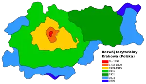 Cracovia medievală a fost înconjurată de un zid de apărare de 3 km completată cu 46 de turnuri și șapte intrări principale (a se vedea Poarta Florian).