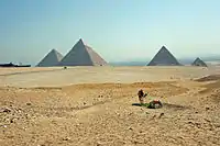 Prima piramidă este aceea a regelui Djoser de la Saqqara ; piramidă în trepte care are 60 metri înălțime. Cea mai mare dintre piramide este piramida regelui Kheops (în egipteană Hufu), care constituie unul din punctele de atracție cele mai căutate de turiștii din lumea întreagă, la Giza, lângă Cairo.