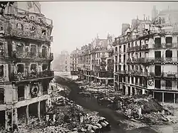 Comuna din Paris avea o comisie militară, o comisie a aprovizionării, o comisie a învățământului și comisia pentru politică externă. Dar cum Parisul era înconjurat de armata germană, iar guvernul și parlamentul de la Versailles își pretindeau puterea și armata franceză se retrăgea, Comună din Paris era izolată de restul lumii. Garda Națională, în urma unui atac asupra Versailles-ului, a fost înfrântă, iar comunarzii au încetat orice ofensivă. Între timp, izbucnise un război civil în Paris: au avut loc încercări de conciliere, intervenind și intelectuali francezi, dar fără succes, astfel, pozițiile s-au radicalizat. Comuna din Paris a folosit legea ostaticilor prin care capturau personae suspectate a fi opozanți-înalți funcționari, clerici, chiar și arhiepiscopul Parisului. Pe 20-28 mai 1871, guvernul de la Versailles conduce o ofensivă împotriva Parisului. Au loc lupte de stradă, sunt impuse barricade. Dar datorită sistematizării și modernizării, pericolul unui război de gherilă în Paris fusese eliminat. Armata beneficiase de pe urma bulevardelor deschise la Paris. Armata a întâmpinat o rezistență hotărâtă, dar slab echipată. În cele din urmă, comunarzii au fost înfrânți.