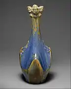 Vas în „stilul cu flăcări”; din perioada Jōmon a Japoniei; c. 2750 î.Hr.; ceramică cu ornamente decorate și aplicate; înălțime: 61 cm, diametru: 55,8 cm; Muzeul de Artă din Cleveland