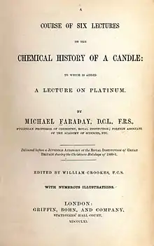 - A Course of Six Lectures on the Chemical History of a Candle: To Which is Added a Lecture on Platinum. Harper & Brothers, New York 1861, Online.
