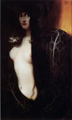 Iudita I dezvăluie o consonanță simbolică și compozițională cu tabloul Păcatul, al lui Franz Stuck: tentația ilustrată de pictorul german devine modelul femeii fatale a lui Klimt, sugerând poziția corpului dezbrăcat și evanescent ca piesă focală a pânzei, precum și fața Iuditei.