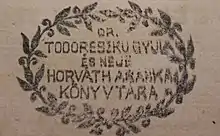 - Akantisz Viktor: Dr. Todoreszku Gyula és neje Horváth Aranka régi magyar könyvtára. Budapest, 1922.