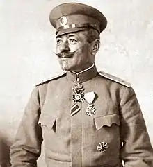 A îndeplinit funcția de comandant al Diviziei 1 Cavalerie bulgară în campania acesteia din România, având gradul de general-maior.[3]