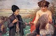 [He produced] paintings showing Madonnas with faces and figures characteristic of the type of beauty that in Malczewski's times could be seen in the villages scattered along the Vistula river...