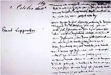 În octombrie 1608, Jacob Metius a dorit să depună cerere de brevet la Statele Generale ale Provinciilor Unite / Estates General, pentru un obiect care permite „să vadă lucrurile îndepărtate ca și cum ar fi apropiate”. Sistemul său constă dintr-o lentilă convergentă și o lentilă divergentă plasate într-un tub, a cărui putere de mărire este de 3 sau 4.[4] Calitatea sa optică este superioară lunetei propuse de Hans Lippershey cu câteva săptămâni mai devreme.[5]