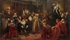 | 19. | Țarul rus Vasili al IV-lea obligat să îngenuncheze înaintea regelui polon Sigismund al III-lea Vasa | 1892 | ulei pe lemn 42 cm × 63 cm | Casa "Jan Matejko" din Cracovia | ![]() |