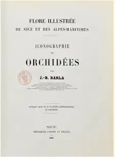 - Les Champignons de la province de Nice et principalement les espèces comestibles, suspectes ou vénéneuses, dessinés d'après nature et décrits par J.-B. Barla, Editura Canis Frères, Nisa 1859, 158 pp. (cu 48 plăci colorate)