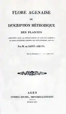 - Flore agenaise; ou, Description méthodique des plantes observées dans le département de Lot-et-Garonne et dans quelques parties des départemens voisins, Editura Prosper Noubel, Agen 1821