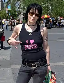Joan Jett (născută Joan Marie Larkin la 22 septembrie 1958) [6] este o cântăreață de rock americană, compozitoare, muziciană, producătoare de discuri și actriță. Jett este cunoscută mai ales pentru munca ei de frontwoman a trupei sale Joan Jett & the Blackhearts și pentru fondarea trupeiRunaways și concertele anterioare cu aceasta , cu care a și înregistrat și lansat piesa de succes „ Cherry Bomb ”. Cu The Blackhearts, Jett este cunoscută pentru interpretarea piesei " I Love Rock 'n Roll ", care a fost numărul unu în Billboard Hot 100 timp de șapte săptămâni în 1982. [7] Alte piese notabile ale lui Jett includ „ Bad Reputation ”, „ Crimson and Clover ”, „ Do You Wanna Touch Me (Oh Yeah) ”, „ Light of Day ”, „ I Hate Myself for Loving You ” și „ Dirty Deeds ”.