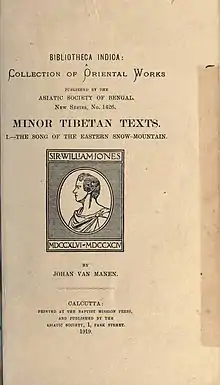 - 1918 - Minor Tibetan Texts: The song of the eastern snow-mountain, Calcutta (Bibliotheca Indica)