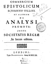 În 1712 a apărut post-mortem o colecție de scrisori între Leibniz și Newton asupra calculului diferențial și integral, scrisori publicate sub îngrijirea lui Collins.