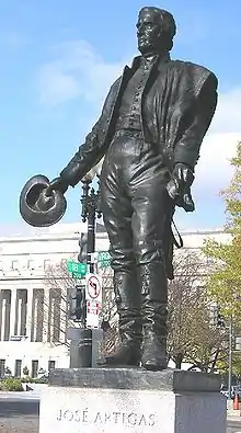 În urma unei proceduri îndelungate, la 24 septembrie 1997, ambasadorul uruguayan Julio Pombo și primarul orașului New York, Rudolph Giuliani au dezvelit un monument închinat generalului Artigas, situat în SoHo, Manhattan, între Avenue of the Americas și Spring Street. Printre personalitățile care au participat la această inaugurare s-au aflat ambasadorul uruguayan, ministrul afacerilor externe, Álvaro Ramos; Președintele Băncii de Dezvoltare Inter-Americană, Enrique V. Iglesias; și directorul departamentului parcuri din New York, Henry Stern.