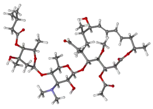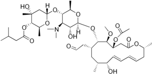 Josamicina este un antibiotic din clasa macrolidelor, utilizat în tratamentul unor infecții bacteriene.[10] Molecula prezintă un spectru de activitate similar cu cel al eritromicinei.[11]