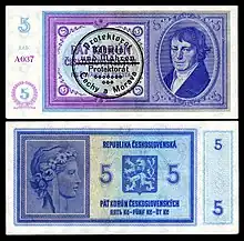 Imaginea sa a fost reprezentată pe bancnota de 5 coroane cehoslovace care a fost tipărită în 1938, dar nu a mai apucat să fie pusă în circulație. În timpul ocupației germane a Cehoslovaciei, bancnotele tipărite în 1938 au circulat în perioada 1939-1940 în Protectoratul Boemiei și Moraviei, teritoriu autonom al Germaniei Naziste, având aplicate pe față cu inscripțiile „Protektorat Böhmen und Mähren” și „Protektorát Čechy a Morava”