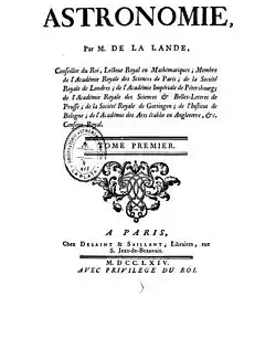 - Traité d’astronomie (două volume, 1764, trei volume în 1771, la care s-a adăugat un al patrulea volum despre fluxul și refluxul mării în 1781; o a treia ediție în trei volume, în 1792).