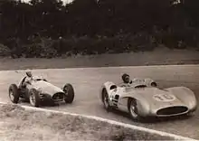 Fangio urmărit de Alberto Ascari în Marele Premiu al Italiei de pe Monza din 1954.
