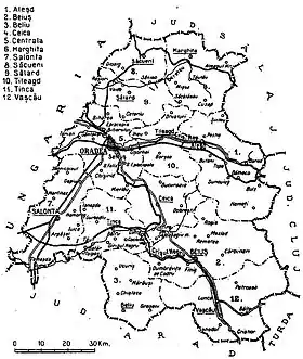 - Plasa Beiuș (cuprindea 62 de sate, avea reședința la Beiuș),