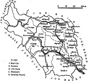 - Plasa Bistrița (cu 45 de sate și reședința la Roznov),
