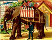 - Către începutul anului 1882, la circul lui Barnum și Bailey erau angajați 370 de artiști, în menajeria circului erau întreținuți 20 elefanți, 338 cai, 14 cămile, multe zebre, lei, leoparzi, hiene și șerpi gigantici.[18]