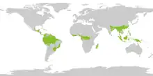 Cele mai mari jungle din lume sunt în Africa ecuatorială de la Camerun către Republica Democratică Congo, în Asia de Sud și Sud-Est de la Myanmar către Indonezia și Papua Noua Guinee, și Pădurea Amazoniană.