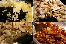 ![]() Etape în prepararea sosului de ciuperci | |