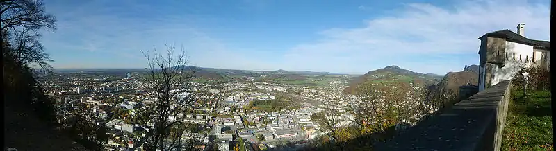 Cele mai vechi așezări umane de pe versantul estic al Kapuzinerberg datează din perioada neolitică. Au fost descoperite așezări preistorice pe acest munte ce datează din 1100 î.Hr. Pe locul unei fortărețe medievale cunoscute sub numele de "Trompeterschlössl" a fost construită în perioada 1599-1605 o mănăstire capucină.