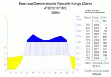 Kinshasa se află în zona tropicală. Media temperaturii anuale este de 25,3 °C. Cantitatea medie a precipitațiilor anuale sunt de 1.378 mm.