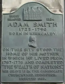 Placă comemorativă a lui Adam Smith care a scris The Wealth Of Nations
