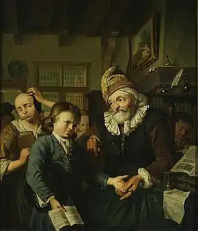 Tematica pe care a abordat-o este cea a cotidianului, Krzysztof Lubieniecki urmând îndeaproape tradițiile „olandezilor mici” de la sfârșitul secolului al XVII-lea și începutul secolului al XVIII-lea. Krzysztof a folosit un colorit ponderat, situații comice și imagini instructive. În pictura „Profesorul” se pot vedea detalii cum este cuțitașul pentru greșelile de gramatică pe pergament, care sugerează o scenă de lecții de gramatică la o școală din oraș. Elevul care a greșit va fi pedepsit de profesor cu lovituri la palme. Durata pedepsei este sugerată a fi măsurată de către clepsidră.[3]