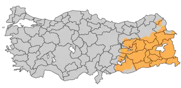Conform recensământului din 1965, vorbitorii de kurdă alcătuiesc majoritatea absolută în provinciile Ağrı, Batman, Bitlis, Mardin, Hakkâri, Siirt, Șırnak, Van, și o majoritate relativă în Diyarbakır.[3][4]