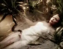 | Videoclipul piesei „Where the Wild Roses Grow” (1995) (stânga) a fost inspirat de tabloul Ophelia de John Everett Millais (1851/52) (dreapta). | |