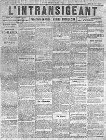![]() Unul dintre primele numere ale ziarului L'Intransigeant (15 iulie 1880). | |