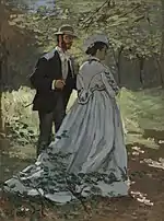 Pădurea a fost un subiect popular de peisaj pentru artiștii francezi din secolul al XIX-lea, în special pădurea Fontainebleau. Înainte de Renoir, Claude Monet (1840–1926) a pictat pe Bazille și Camille (Studiu pentru „Déjeuner sur l'Herbe”) (1865), arătând un cuplu în pădure. În 1869, Renoir și Monet au petrecut timp pictând împreună la La Grenouillère. Până în 1870, Renoir locuia în Louveciennes cu mama sa.[1] De-a lungul acestui deceniu, mișcarea de artă rococo din secolul al XVIII-lea a revenit ca stil și Renoir a îmbrățișat-o.[2][3]Franța a declarat război Germaniei la 19 iulie 1870, declanșând războiul franco-prusac. Renoir a fost recrutat și a servit patru luni în cavalerie, dar nu a luptat niciodată.[4]