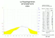 | Date climatice pentru La Rioja Aero, Argentina (1961–1990, extremes 1970–present) | |||||||||||||