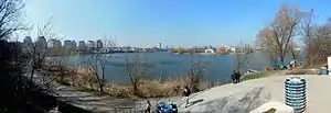 Pe malul lacului Tei a fost amenajat Parcul Tei.