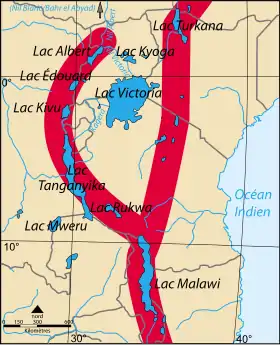 ![]() Harta lacului Victoria șia văilor de rift învecinate | |