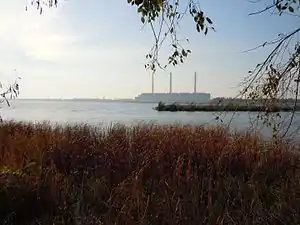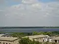 ![]() Lacul văzut de pe partea ucraineană, în depărtare Centrala termoelectrică de la Cuciurgan | |