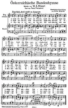 Pe 22 octombrie 1946, prin hotărâre a Consiliului de Miniștri al Austriei, cântecul "Bundeslied" de Wolfgang Amadeus Mozart a fost declarat ca melodie a imnului național.
