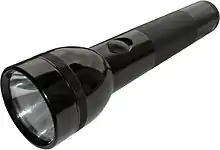 - folosește baterii mai puternice, cu capacitate ridicată și becuri de construcție specială și este ca un far de automobil, etanș, având încorporate un reflector și o lentilă specială.